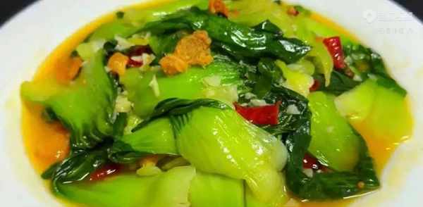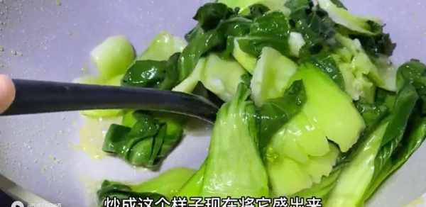 这里的青菜不用炒,炒软即可。所以我们油炸它,现在我们上菜。放入碗中备用。