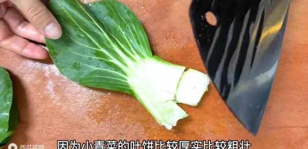 因为小青菜的叶柄比较粗壮,即使煮熟也很难入味。你可以把它们打碎,这样更容易品尝。