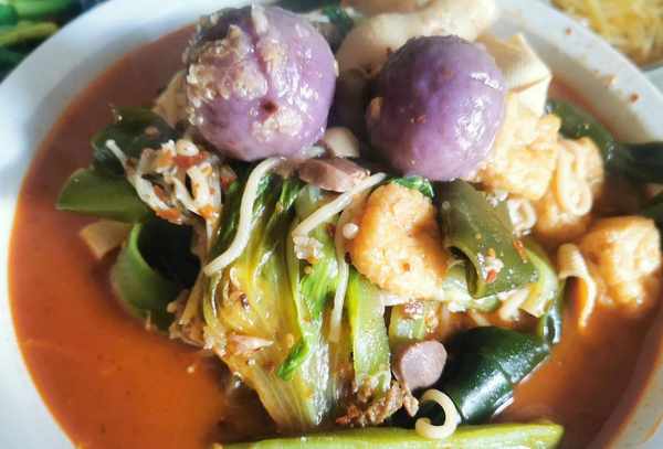青菜、沙拉、火锅丸子、金针菇、毛菜、火锅底料