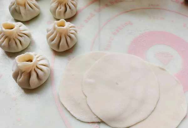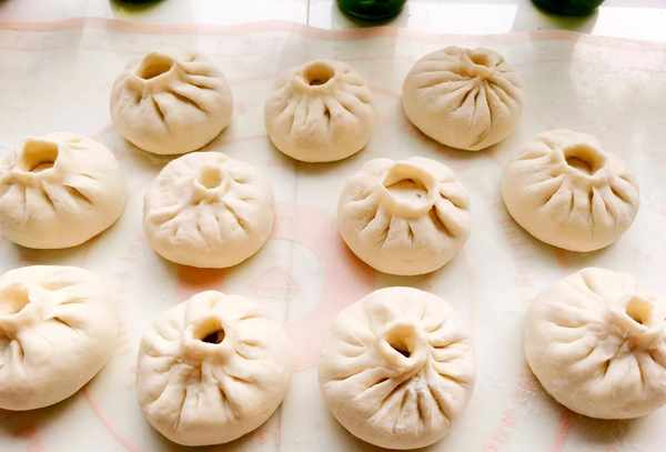 前一天晚上把肉和虾馅炖好,买饺子皮。早上起床,在馅里拌入一些抹油的香葱,擀开皮,把馅包起来,一下子炸好。包子底部焦了,但顶部是软的。咬一口满满的香味,真是幸福的滋味。