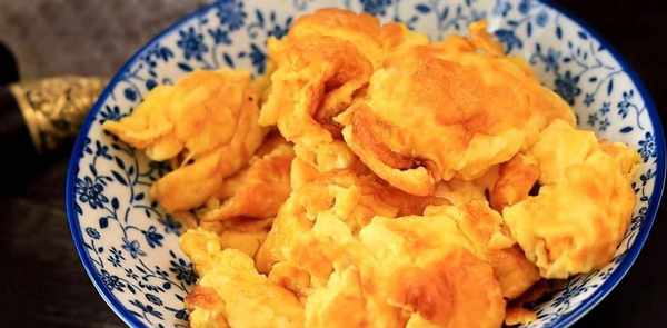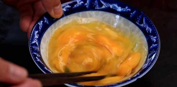 锅烧热,倒入少许油,用铲子刮几下,再把油倒进锅里,再倒入适量的油。油热后加入鸡蛋液,炸成大块装盘待用。