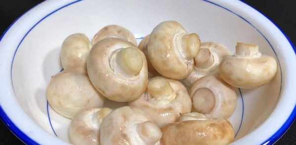 加入两只小鲜菇,加入一勺食盐,盖上一大碗水,盖上蘑菇,洗净,沥干水分,放入碗中待用。