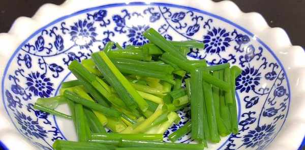 切几瓣大蒜,放入碗中备用。小葱几个,先把葱白剁碎,再把葱叶剁碎放在碗里待用。