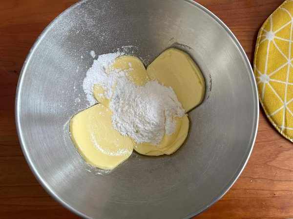 1、黄油提前软化,用手指轻松按压得动就可以,加入过筛的糖粉和盐拌均匀;