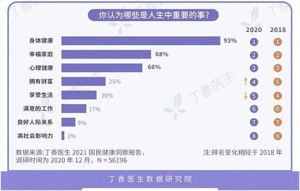 根据《2021国民健康洞察报告》显示,93%的人认为“身体健康”是人生中最重要的事情,74%的受访者因为疫情改变了生命观。