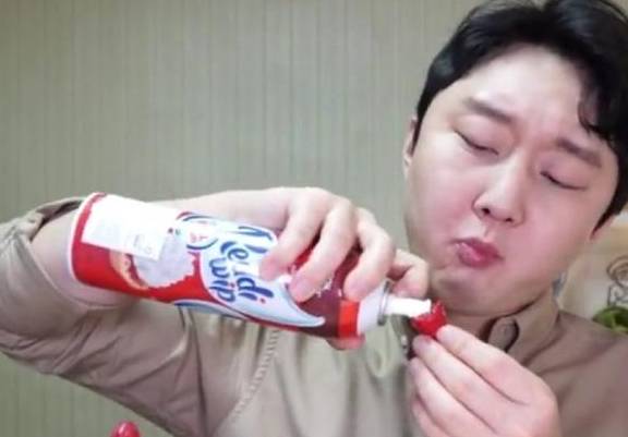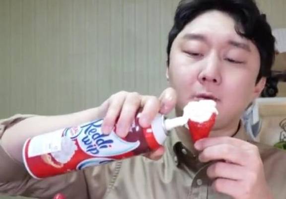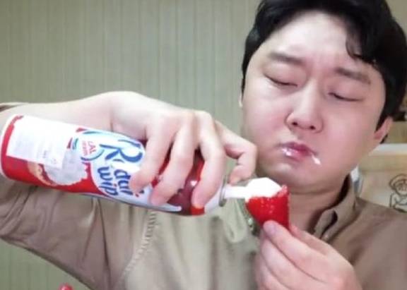 那天,小妖在家看视频的时候就被这个韩国朋友吃草莓的方式给吸引了。我们平常吃草莓都是直接洗干净后吃的,而这个男子想出了这样的吃法,小妖瞬间有些佩服他的脑洞。男子用一整罐的奶油在吃草莓,咬一口就吃一口,一个草莓都要吃好几口奶油。