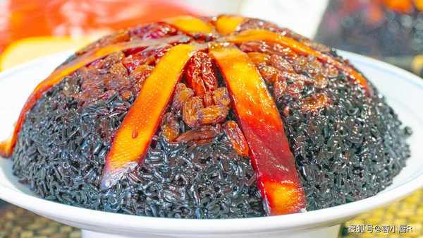 6、然后找一个盘子倒扣出来就可以了,好吃的黑糯米饭就做好了。