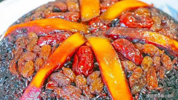 食材:紫米200克 、糯米200克、100克红糖、300克芋头、300克紫薯、100克牛奶、红枣、葡萄干、枸杞、芒果干、猪油