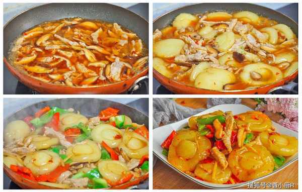 食材:黄皮土豆400克、猪肉一小块、一个蛋清、香菇、青椒、红椒、生姜、葱白、盐、180克土豆淀粉、葱姜,郫县豆瓣酱一勺、生抽、胡椒粉