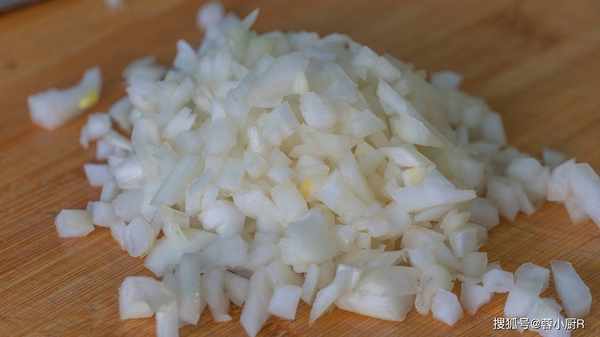 6、我还准备了半个白洋葱,也切成小丁就可以了。