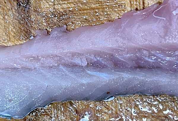 3.用手摸鱼,附近有一根长长的小骨刺,用刀切掉。