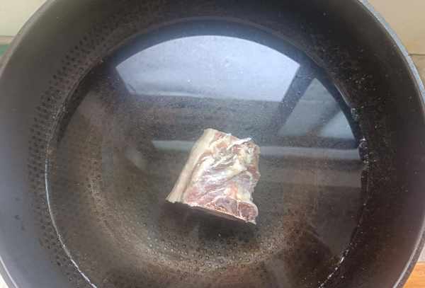 1、腊肉一小块,最好用肥瘦不一,入味不油腻的条状腊肉。先将腊肉清洗干净,放入锅中冷水开锅,水开后捞出。这种处理可以降低培根本身的咸味,也可以让培根更容易切。