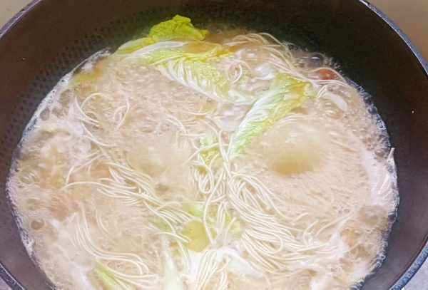 6.最后加入生菜叶焯水即可食用!一碗汤鲜美,简单又好吃的腊肉粉丝就做好了。喜欢粉条的,推荐来试试!