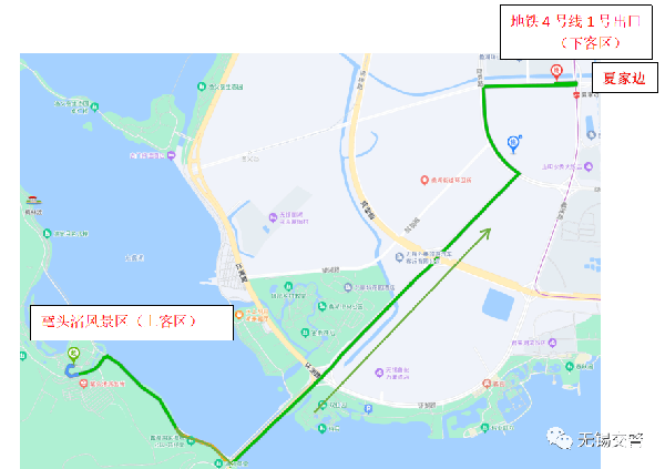 鼋头渚景区将在地铁4号线夏家边站、环湖路管社山渔人码头等地开辟接驳专线,在中南西路、望山路、望湖路以及水上茗豪码头(环湖路望湖路口),利用公交、水上巴士短途接驳前往鼋头渚的游客。