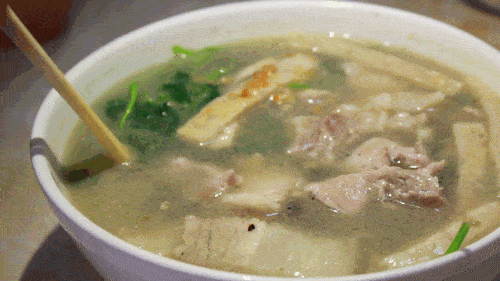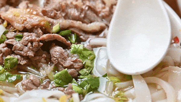 要激怒一个潮汕人,只需把粿条和河粉画上等号就行,虽然两者的原料相似,但粿条的米浆比例更大,从外观上看更细、更厚,吃起来更具饱腹感。没有什么比早上来一碗牛肉粿条汤更能治愈人心的事,在碗中放入灵魂的炸蒜、香芹、烫得八成熟的牛肉和粿条,冲入原汤,那肉香和芹、蒜香瞬间碰撞出灵魂飞出宇宙的美味,又鲜又爽。