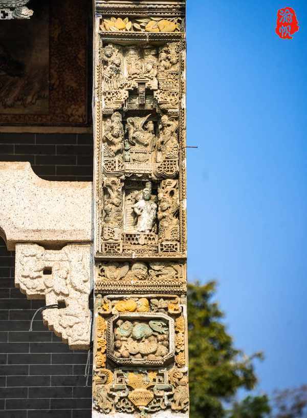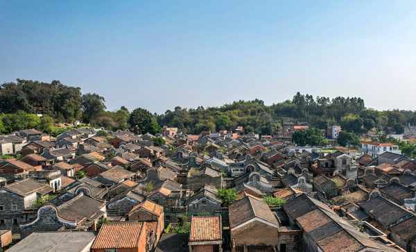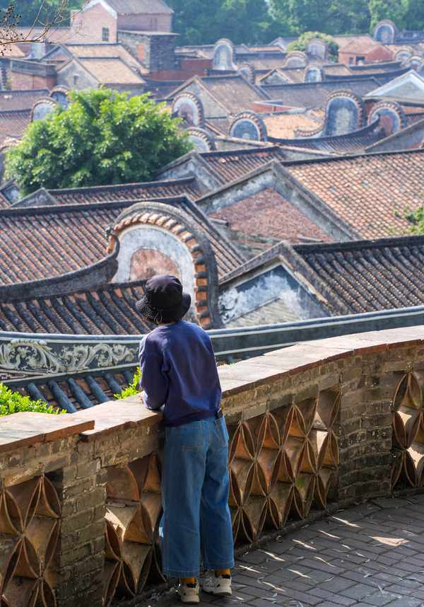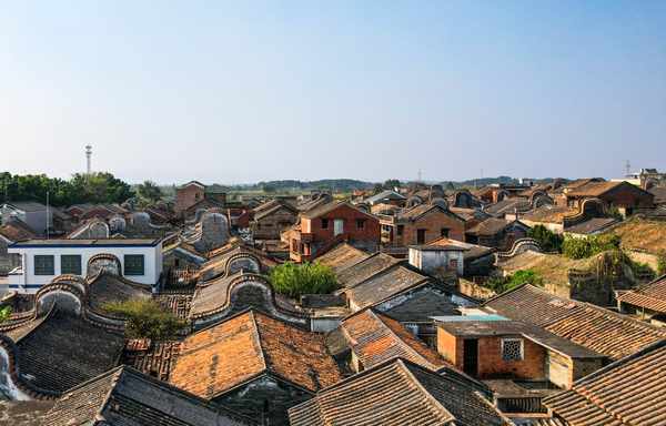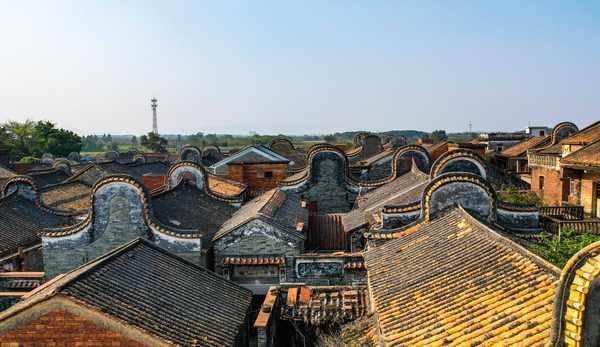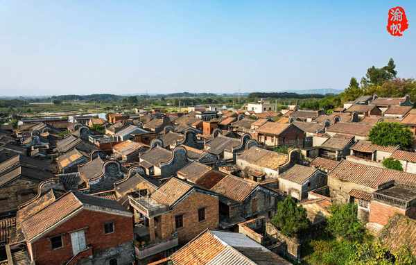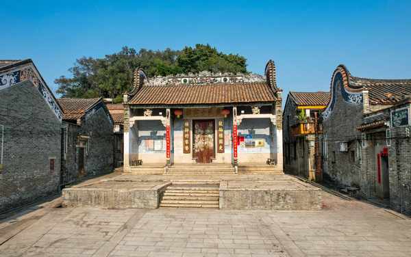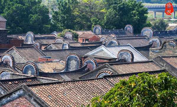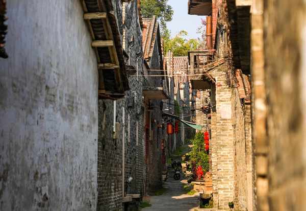 村前有一棵树龄达数百年的古榕,如同村子的守护神一般,为村民遮风挡雨,树后是数百间清朝古屋,镬耳林立、飞檐画栋、古色古香。老屋排列有序,中间是由麻石、青砖和洋灰铺成的二人宽巷道,纵横交错,如同迷宫一般。