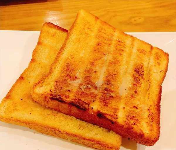 2、将面包片煎至两面金黄色。
