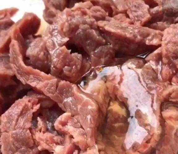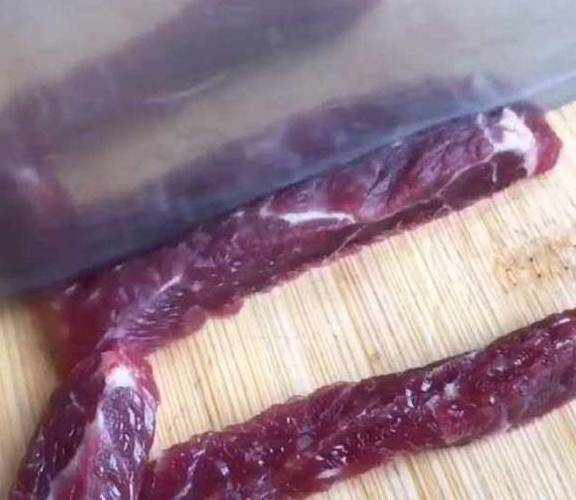 再把牛肉给切成条。