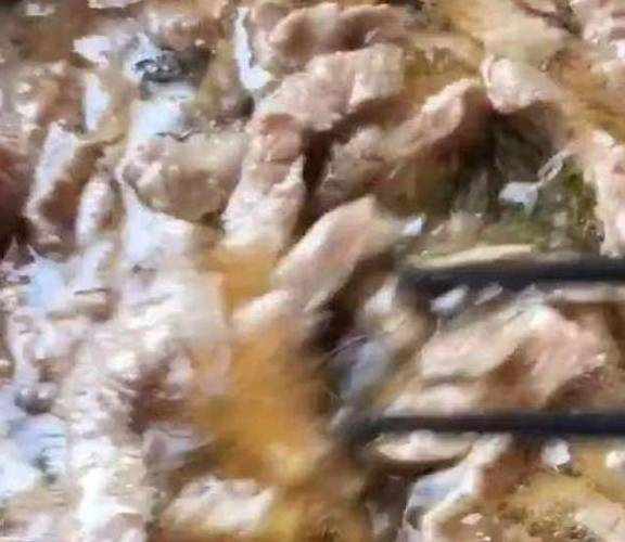 炸到牛肉熟。