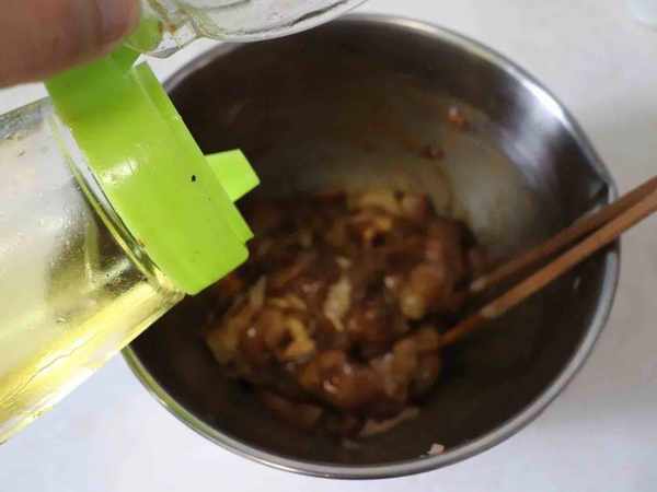 6.1勺玉米淀粉和少许食用油,混合均匀后腌制15分钟