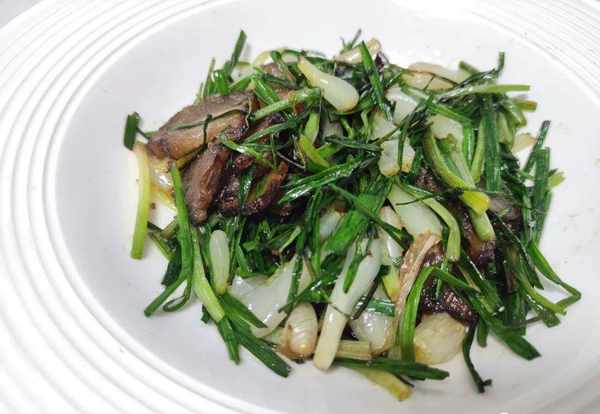 这样炒出来的腊肉鲜香,野葱有一种独特的味道,上桌后,颜色翠绿特是招人喜欢。既好吃又下饭,现在正是野葱的季节,田里面经常可以看到它的影子。遇到的话挖一点回来,这样子炒一炒,特别不错。