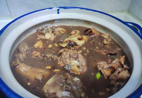 炒好之后倒入水,水可以稍微没过食材。放着将锅里面的水煮开,水开之后我们再把食材放在砂锅中用,小火慢慢焖煮个30分钟;