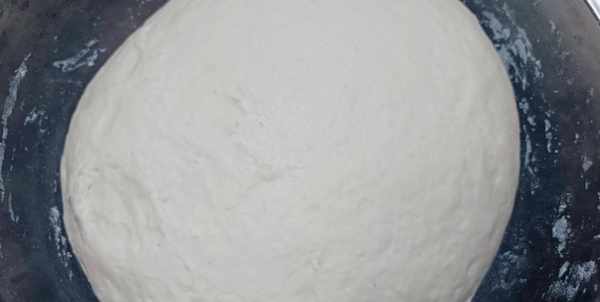 6、300克的温水中加入一勺白糖和5克酵母搅拌至融化,再准备500克的面粉放入盆中,少次多量加入酵母水,边加边用筷子搅拌,搅拌成絮状,下手揉成光滑的面团,发酵1个小时以上。