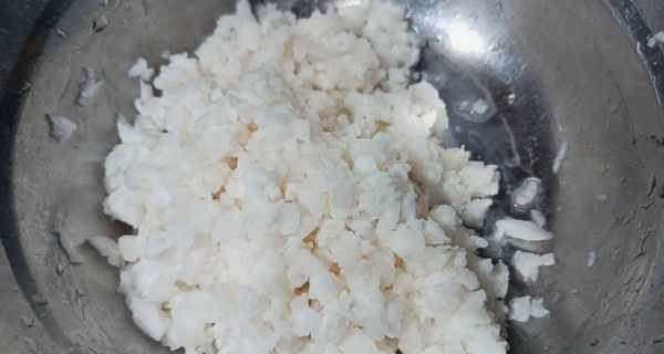 4、马蹄清洗干净面的泥土,再把皮削干净,削完皮后清洗干净,用刀拍一下,然后切碎。