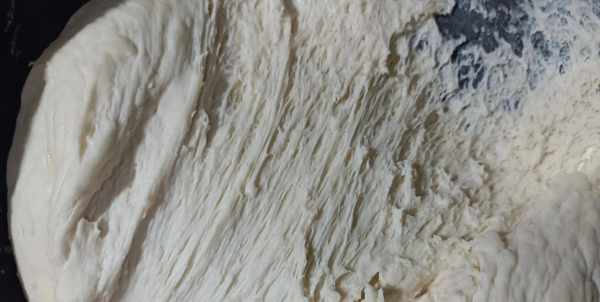 7、面团体积明显增大,按一下不会弹,里面的组织像蜂窝状,证明就发好了。