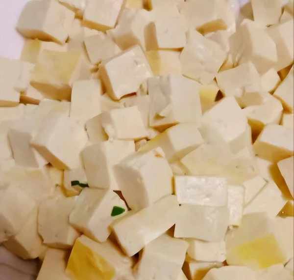 第一步,香椿芽洗净,豆腐切成小块。锅里加水烧开,放点食盐。然后豆腐块放入焯水,捞出过凉水,沥干水分备用。