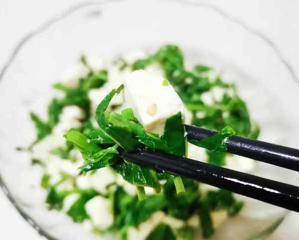 烹饪技巧:千万不要加其它香辛料,会影响香椿的自然香味。这样做出来的香椿芽拌豆腐,已经很春天很春天了。