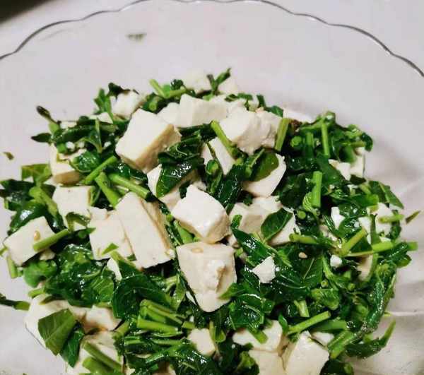 一把嫩嫩的香椿芽,配上白嫩的豆腐,一道清清爽爽的