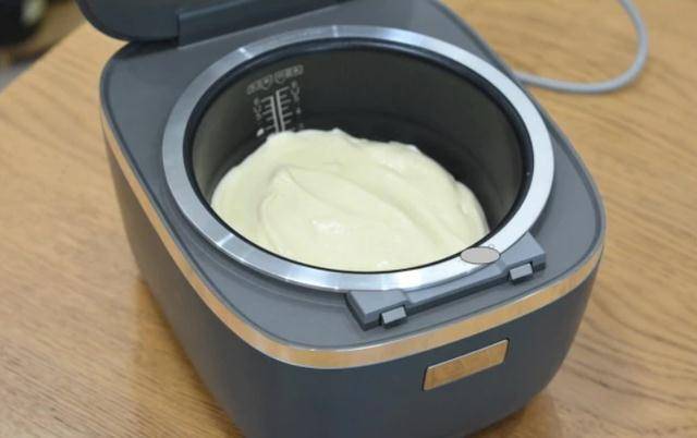当蛋糕熟了以后,把电饭煲的电源拔掉,让它自然降温至室温。由于电饭煲内的温度相对稳定,蒸出来的蛋糕也会比较平整,而且不容易出现裂口。