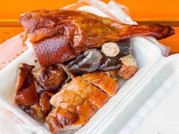 除了深井烧鹅,江门市新会区古井镇出品的 “古井烧鹅”同样颇有名气,据说是用南宋宫廷秘方秘制,皮香脆不腻、汁浓厚甘甜。