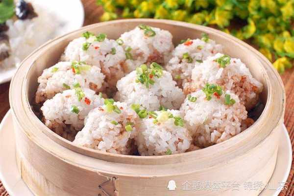 3、炒好的大米加入生抽、老抽拌匀,肉馅团成丸子,放进大米里滚一圈,裹上一层大米,放在盘子里,上锅蒸20分钟,取出后撒上葱花即可。