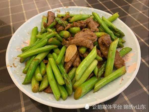 材料:芦笋250g、牛肉200g、蚝油3大勺、黑胡椒1大勺、糖半大勺、蒜头4瓣、姜1小块、淀粉1.5大勺、料酒1大勺、老抽几滴;