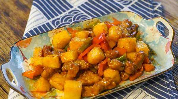 (6)享用:装盘后即可享用。菠萝咕咾肉可以与米饭一起食用,也可以作为配菜。