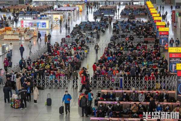候车大厅里,大批游客在此等待踏上旅途。