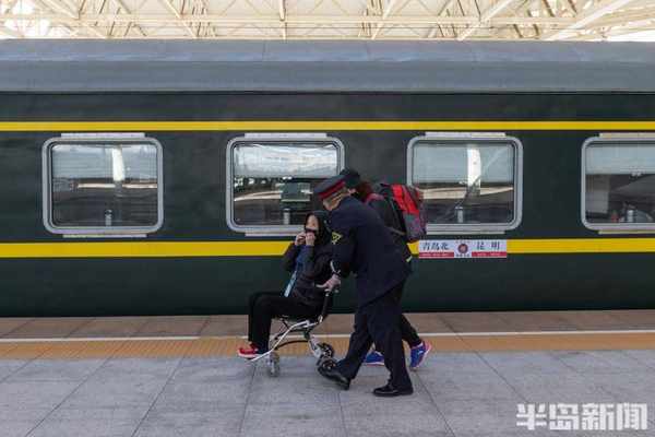 青岛北站工作人员为老年人服务。