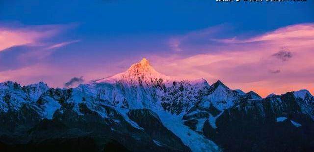 这就是梅里雪山,又名太子雪山,位于云南迪庆,是藏区八大神山之一。梅里雪山不仅风景秀丽,还是许多药材的产地。由于它在藏民心中极为神圣,每年都有许多藏民来此朝拜。值得一提的是,“日照金山”是众多背包客梦寐以求的不可多得的景点,吸引了户外爱好者和摄影爱好者。