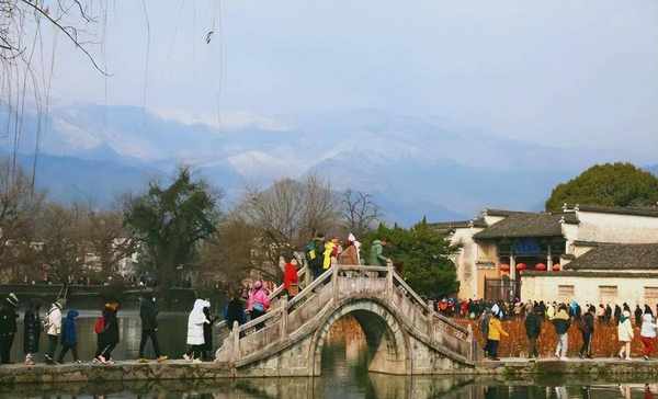 新民晚报讯(通讯员 何彦铭 光颖颖 记者 吕倩雯)黄山黟县宏村景区,粉墙黛瓦的徽派民居和远方皑皑白雪的群山交相辉映,行走其间,仿佛走在山水画中。3月25日,大年初四,黄山黟县景区实际共接待游客41013人,同比增长395%;创五年来同期新高。