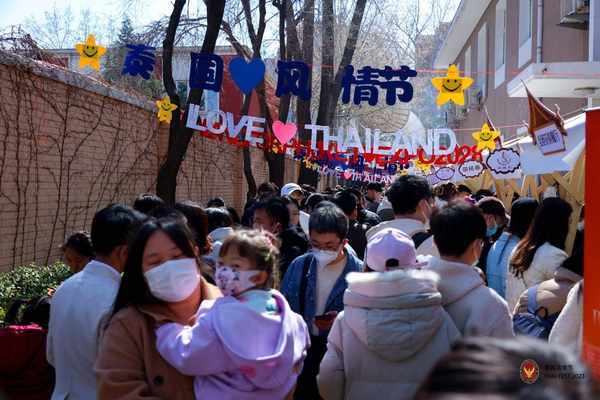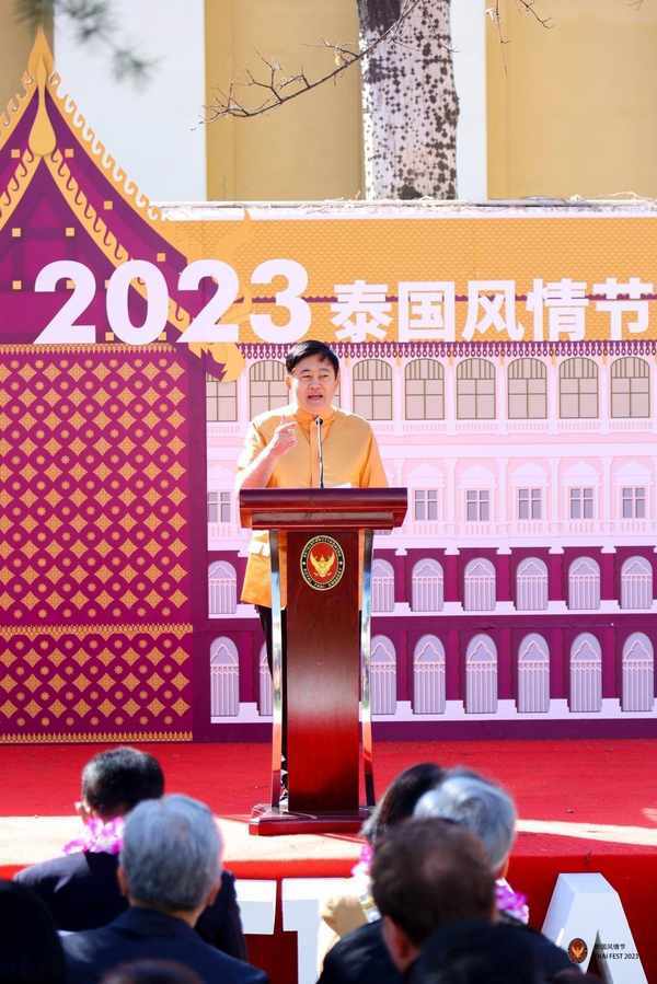 2023年3月12日,由泰国驻华大使馆主办的一年一度最盛大的泰国文化活动“泰国风情节”在泰国驻华大使馆官邸举行,多国驻华外交官受邀参加开幕式,并共同为活动剪彩。本次活动以“神奇泰国之神奇新篇章”为主题,通过还原泰国传统市集,演奏特色器乐,表演传统舞蹈及泰拳等活动,全方位生动展示了泰国丰富多彩的文化生活。