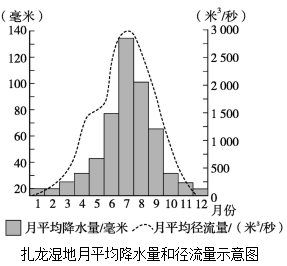 【解析】6.由图可知,扎龙湿地6月至9月降水量、径流量最大。因此,扎龙湿地对齐齐哈尔市环境调节能力最强的时期为6月至9月。故B正确,ACD错,本题选B。