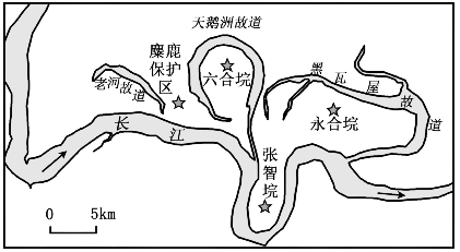 麋鹿是世界珍稀动物,俗称“四不像”,原产于我国长江中下游沼泽地带,以青草和水草为食物。后来由于自然气候变化和人为因素影响,在清末除一部分麋鹿被运往欧洲各地外,麋鹿在我国消失。1985年,在世界动物保护组织的协调下,英国政府决定无偿向中国提供种群(首批22头),麋鹿在百年之后重回故土。之后有更多的麋鹿回归家乡,并有部分经野化训练后重归自然。为保护麋鹿,我国建立了四个麋鹿繁育基地,分别是北京南海子麋鹿苑、江苏大丰麋鹿自然保护区、湖北石首麋鹿自然保护区和河南原阳县麋鹿散养场。下图为湖北石首麋鹿自然保护区示意图。