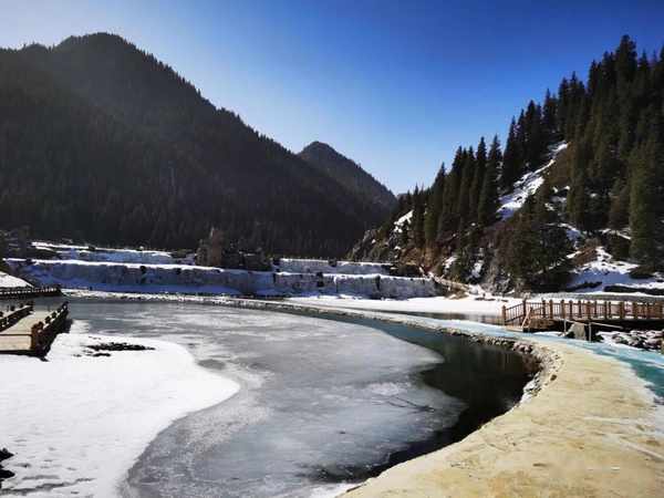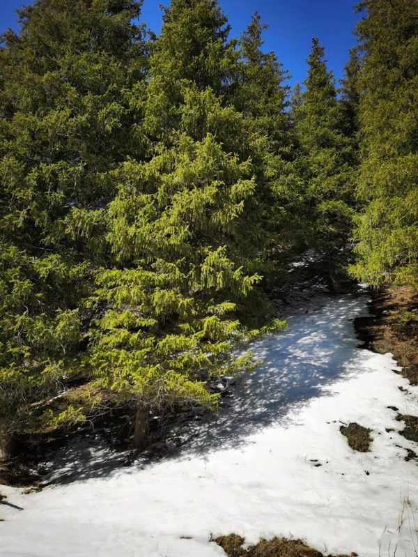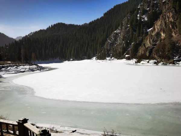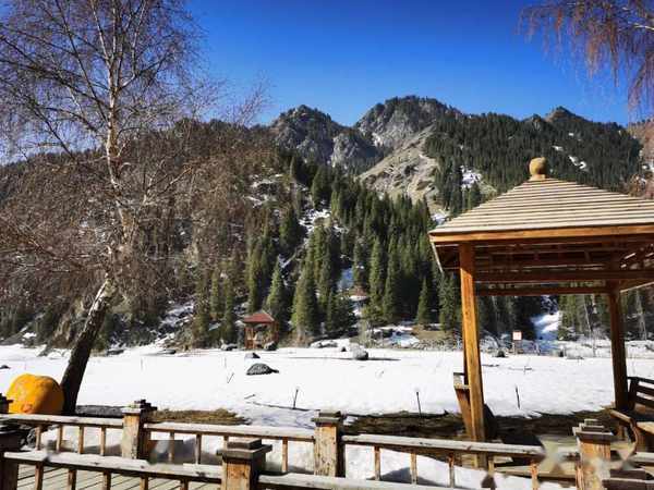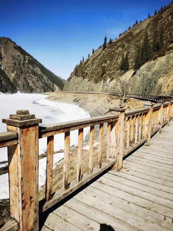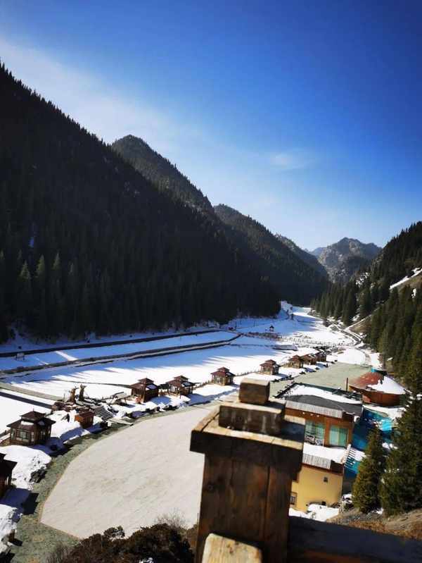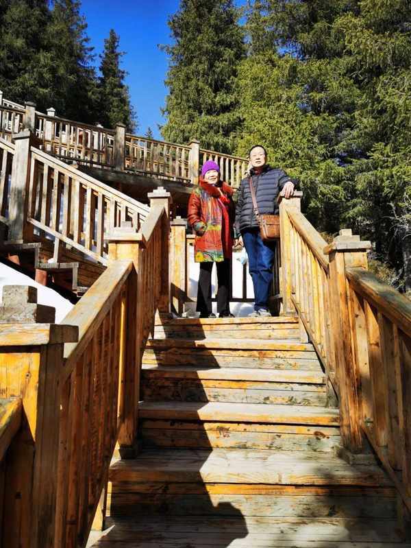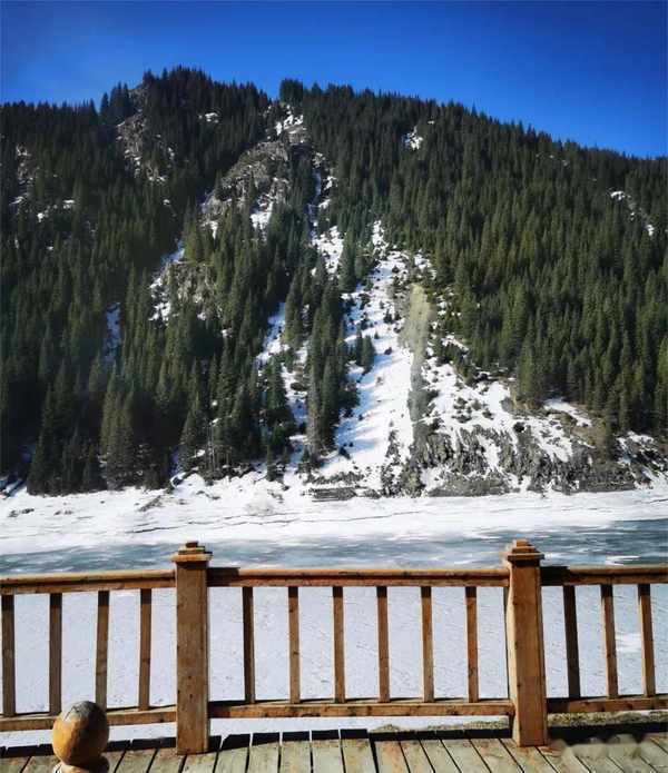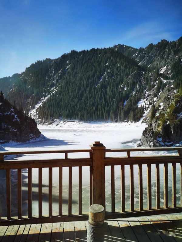 景区门口风好大啊,幸好我们戴了帽子。区间车行了二十五分钟,终于到了照壁山景区。上山的路还有积雪没有清扫,所以没有办法去天鹅湖景区了。