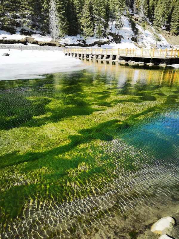 下来发现一处温泉,感觉这里的水已经融化,生机勃勃的样子。