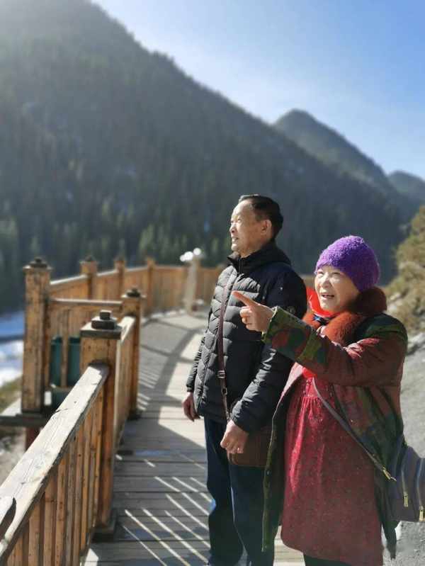 陪爸妈上了木栈道,走了一段,很快就到一个小观景台,可以眺望远山。