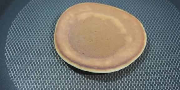 1、取平底锅,开小火,盛入蛋糊,小火煎3分钟左右;