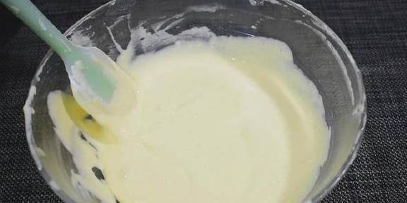 4、蛋白霜分3次加入蛋黄糊中,翻拌均匀;