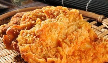 3、锅中入油,五成热下鸡排,中小火炸制,两面金黄即可捞出